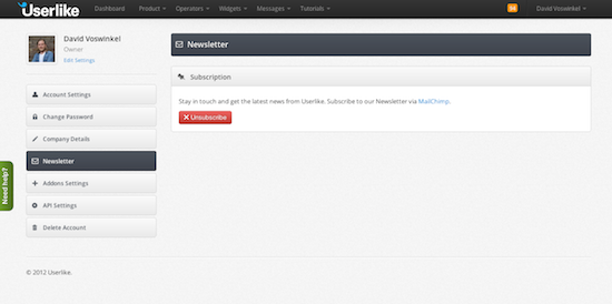 Also, you’ll be able to sign up for our newsletter ! In this newsletter we’ll keep you updated on feature developments , we’ll give you tips on how to use your live chat system , and we’ll share success stories . You can subscribe for our newsletter upon registering, or at the reserved section in the dashboard.